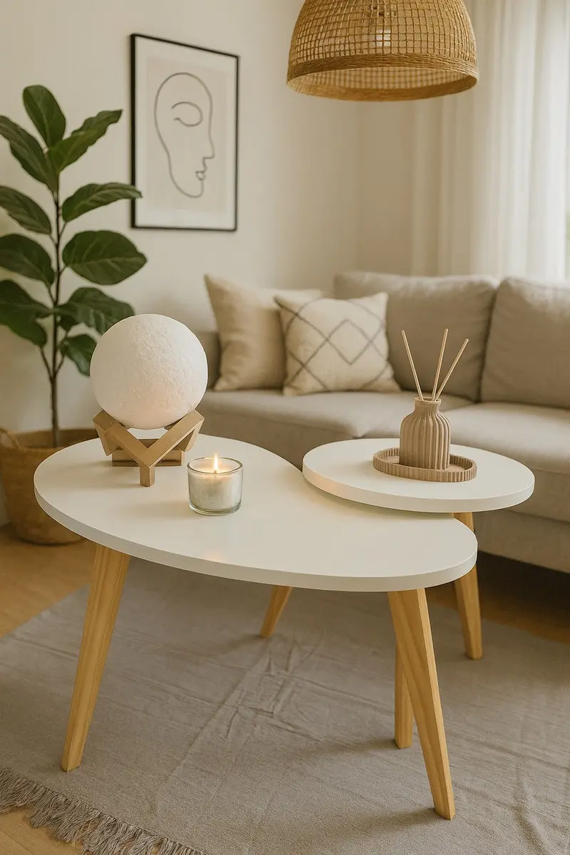 Set Mesas Ratonas Nordicas Boomerang Blanco